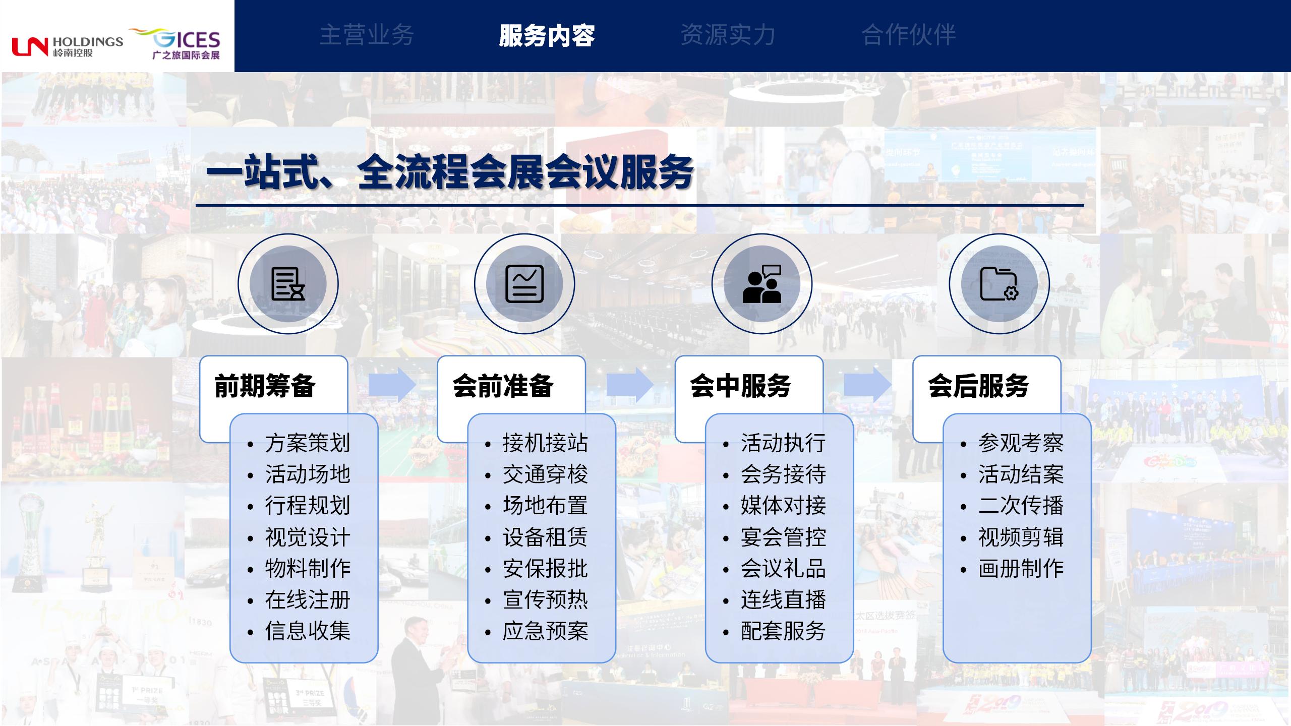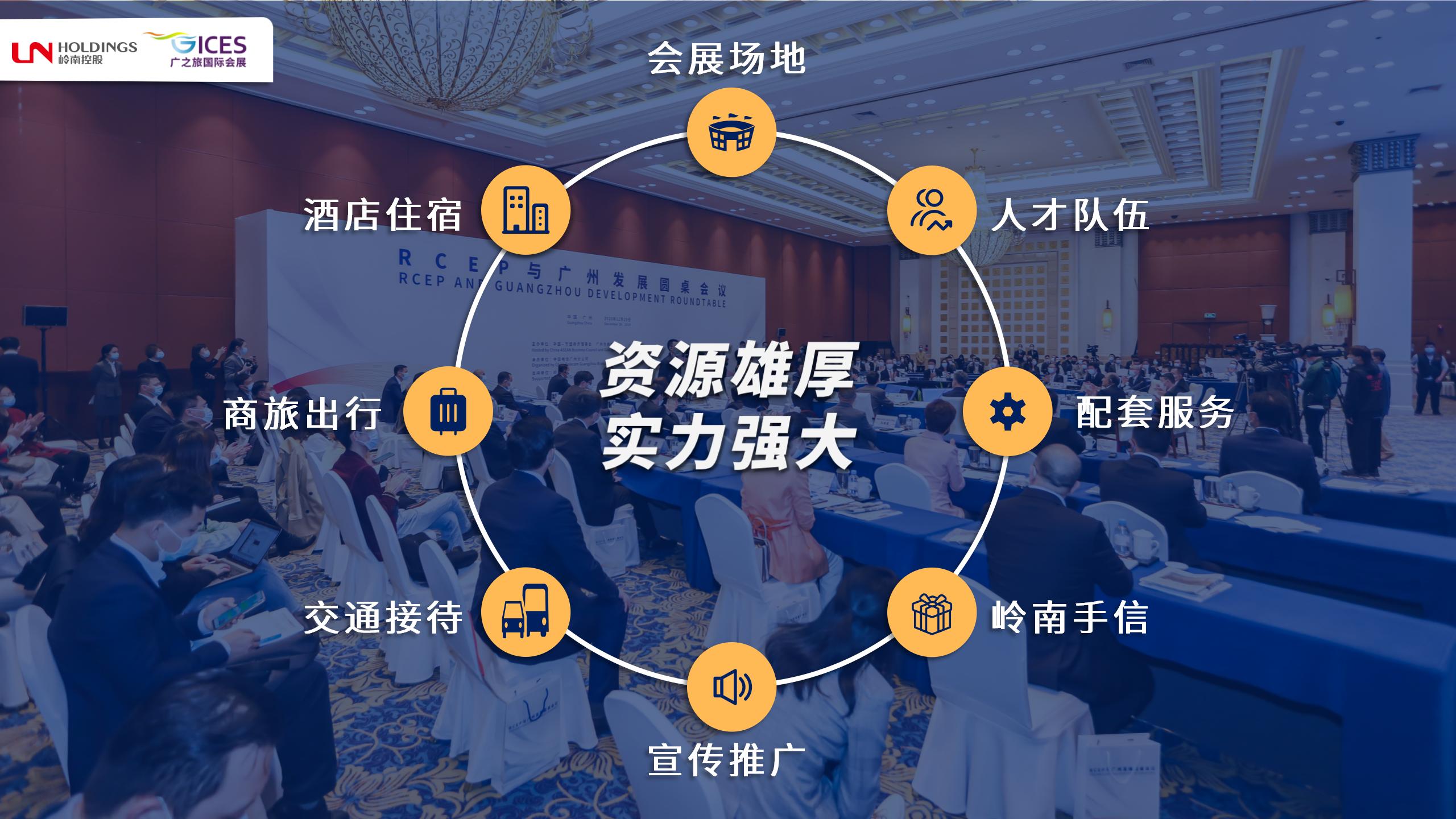 依托嶺南商旅集團(tuán)吃住行游購(gòu)?qiáng)省耙惑w化”產(chǎn)業(yè)鏈優(yōu)勢(shì),具備優(yōu)質(zhì)的會(huì)展場(chǎng)館、酒店、商務(wù)考察、交通出行、宴會(huì)餐飲服務(wù)資源。